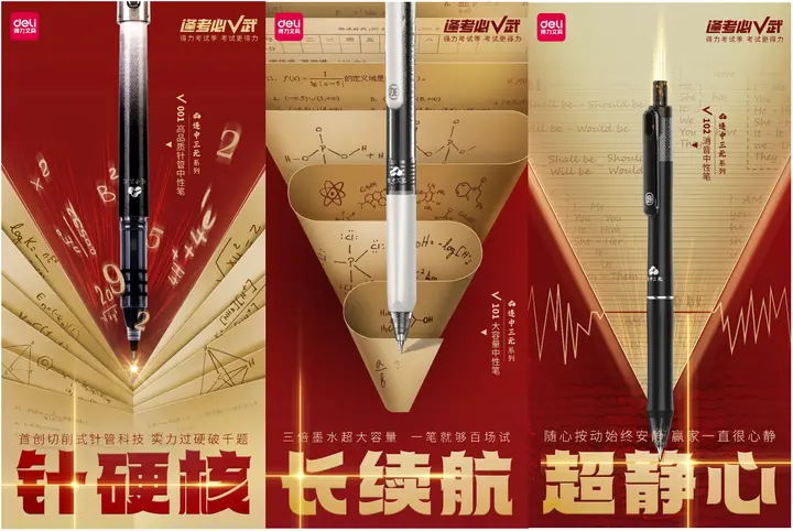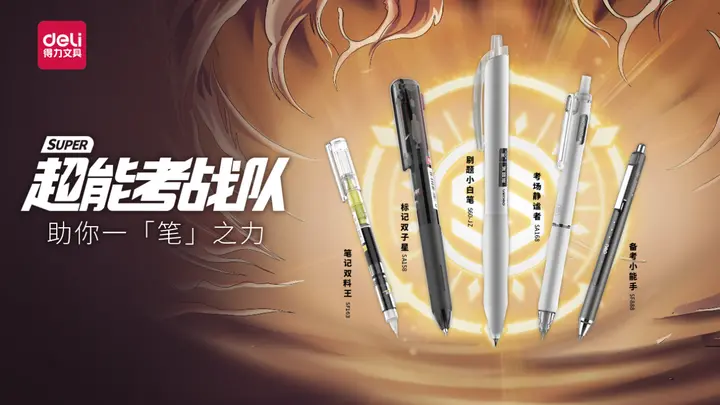 本次得力好笔嘉年华项目重点推广的S系列超能考战队及V系列连中三元考试用笔,即是得力书写工具系列产品的代表之作,依靠多项突出优势深入学生学习场景。其中,备考季S系列的多款书写产品,凭借消音按动、黑红双色、荧光标记、直液芯科技和油墨速干等硬核实力赢得众多学子青睐,成为刷题必备。考试季V系列产品以“长续航、针硬核、超静心”的强劲实力,让莘莘学子“逢考必V武”。其中好评如潮的V001高品质针管中性笔搭载行业首创的全新黑科技针管技术,运笔流畅、线条顺滑,具有很舒适的笔触感;而V101大容量中性笔更是拥有三倍墨水超大容量,一笔就够百场试。