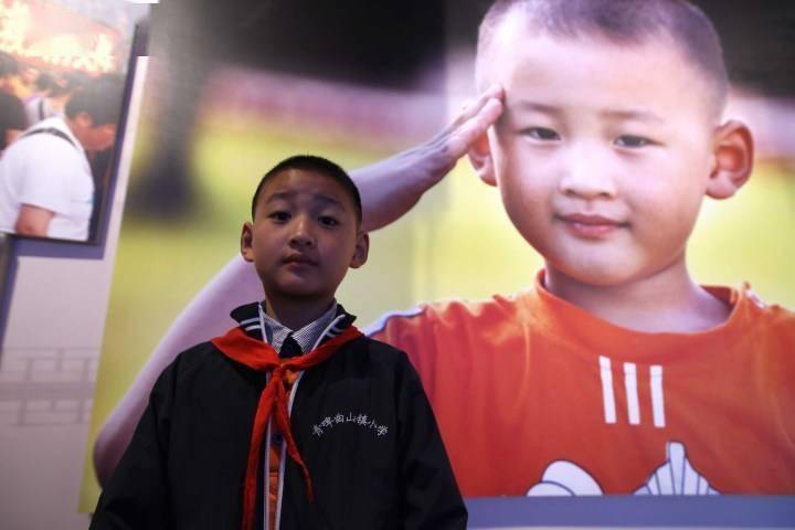 郎铮,被称为“敬礼娃娃”,2008年5月13日早晨7点,北川县曲山幼儿园废墟中,一位被掩埋长达20小时的小男孩被解放军战士救出。他躺在一块小门板做的临时担架上,一边说着“谢谢叔叔”,一边举高稚嫩的右手,向8位战士敬礼,记者用相机记下这一幕。