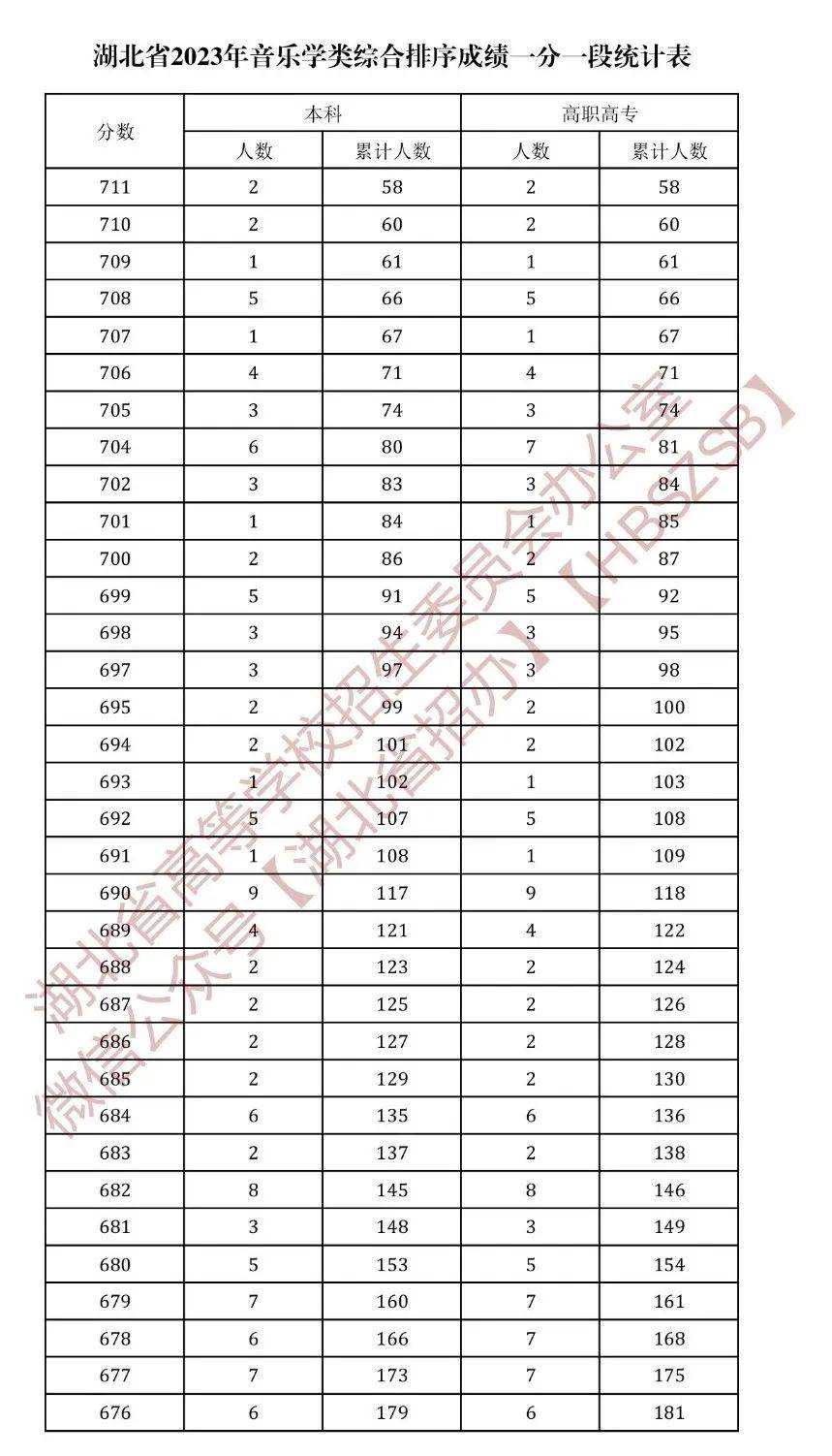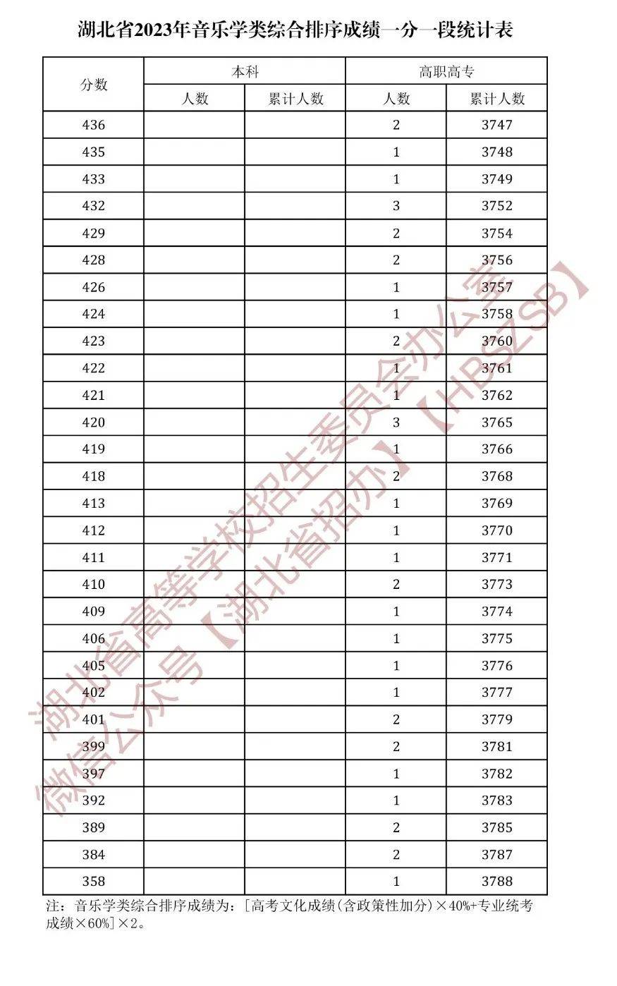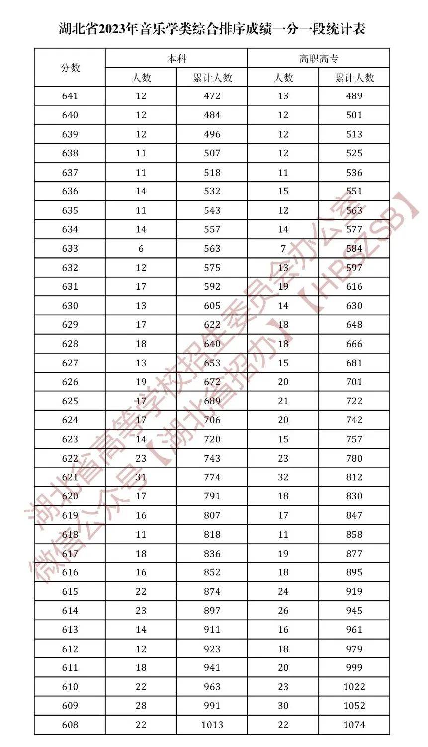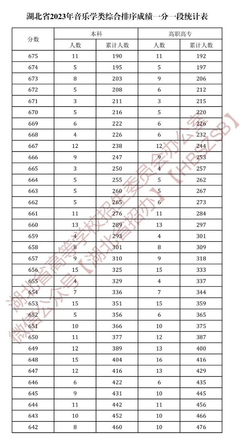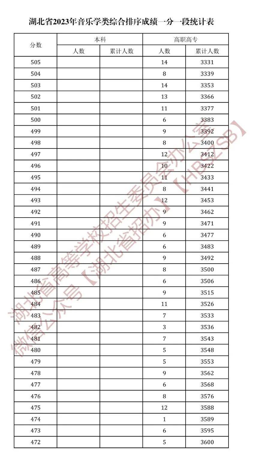 原标题:湖北省2023年音乐学类综合排序成绩一分一段统计表来了 快看你的排名!