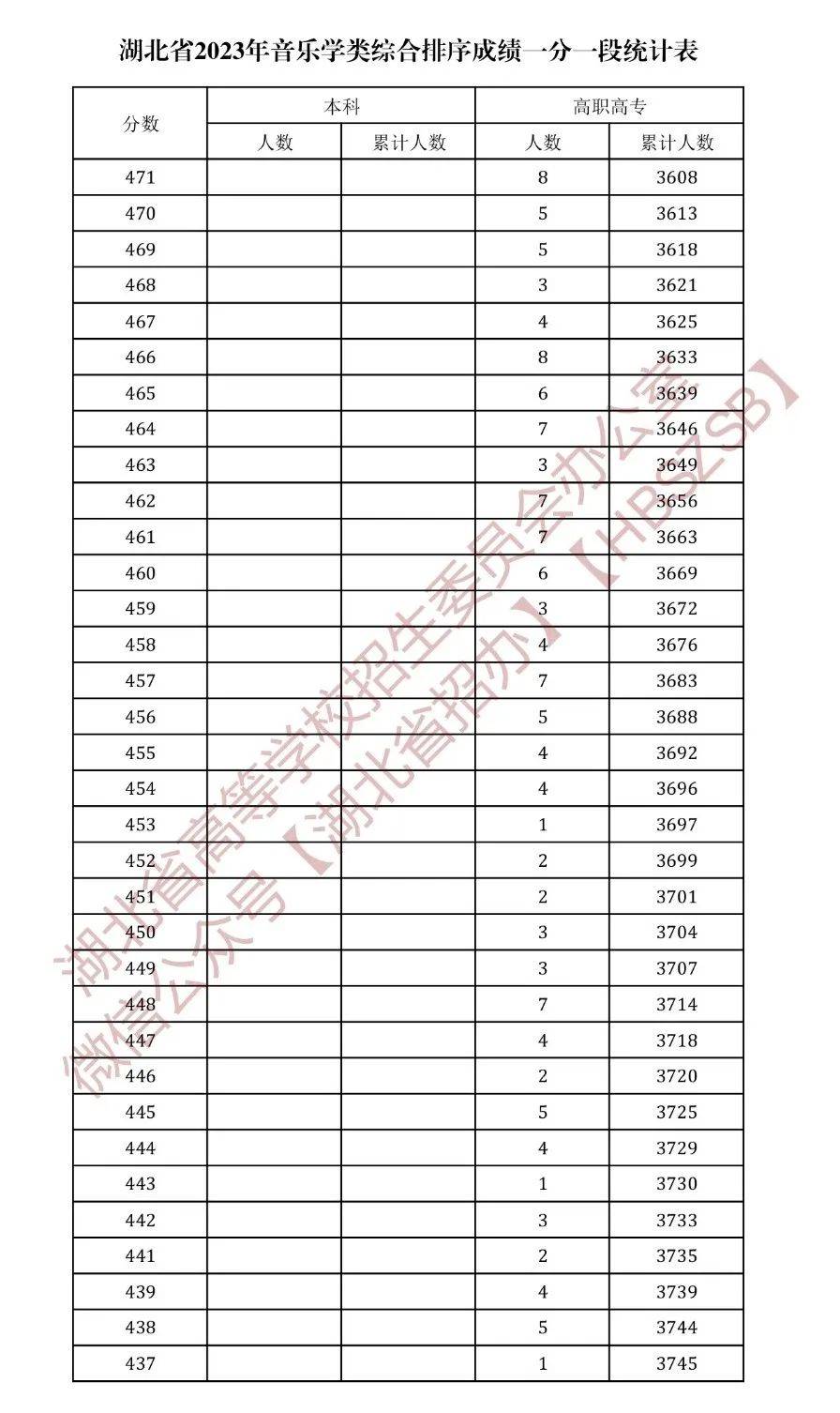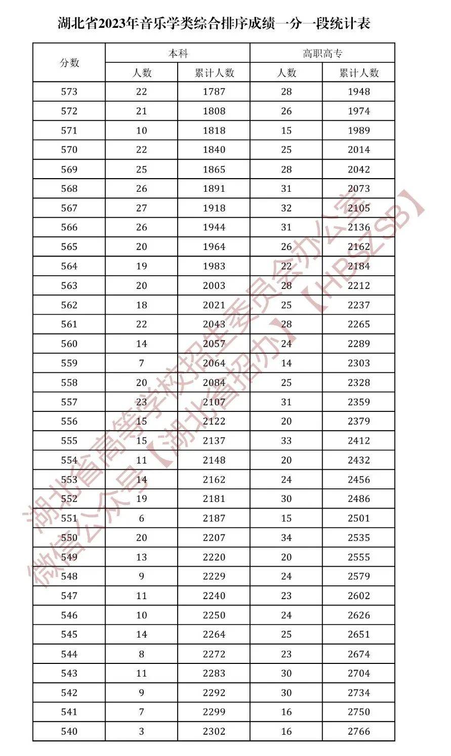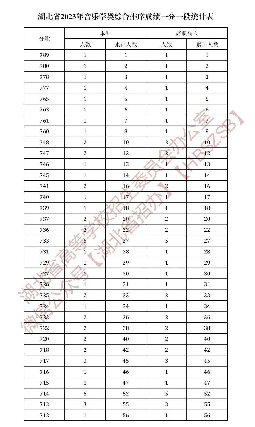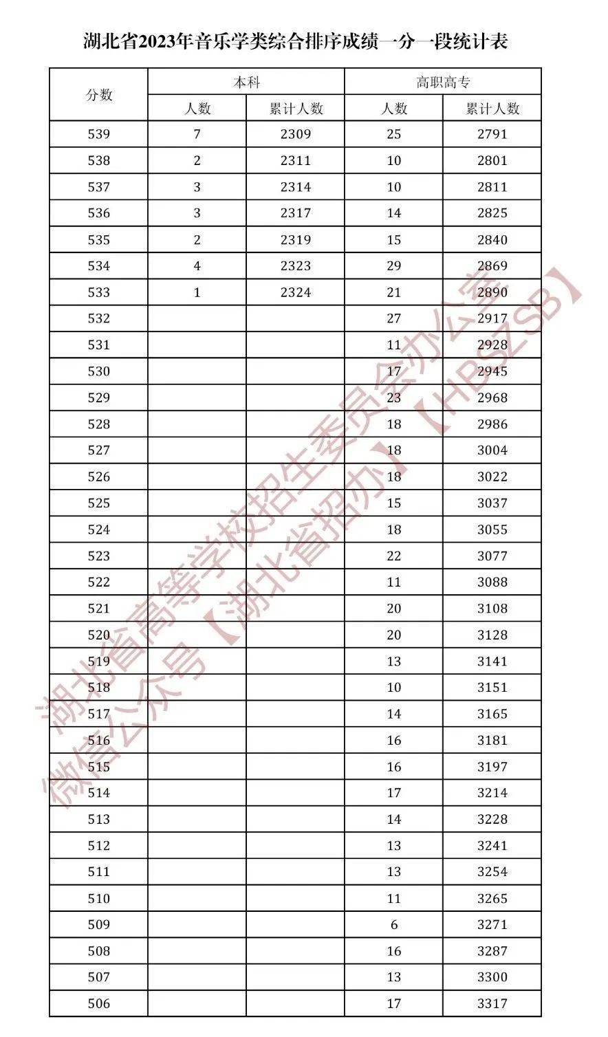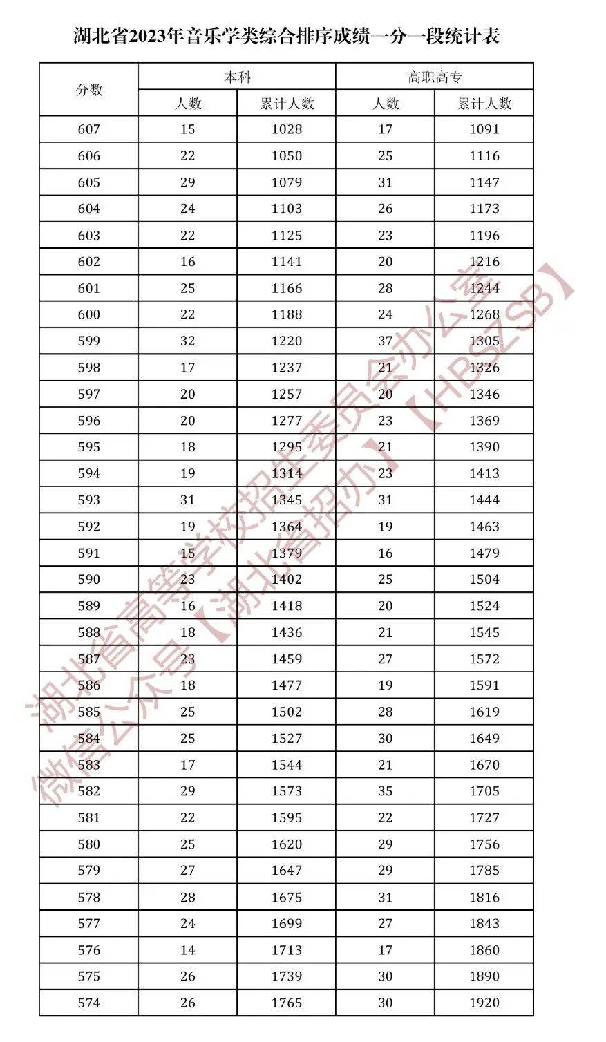 湖北省2023年音乐学类综合排序成绩一分一段统计表来了 快看你的排名!
