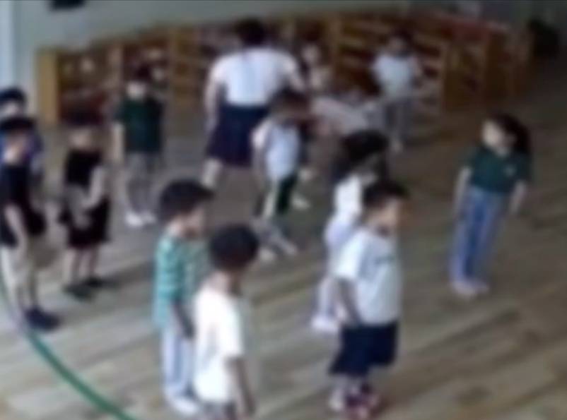 视频中,多名孩子在教室里排练节目,一名老师在指点动作和排列队形,期间,老师多次推搡孩子,连续推倒4个孩子摔在地上,爬起来后,其中一个孩子又被再次推倒在地,爬起来后又遭推搡。情绪激动的她紧接着继续推搡,而后又有孩子摔倒在地。一个女孩被拎起往后一甩。