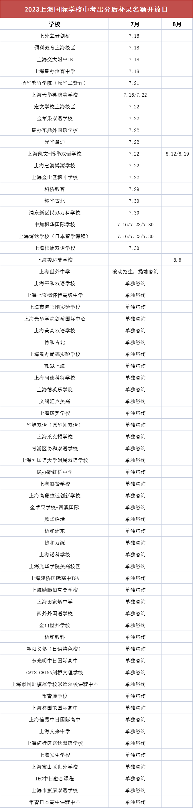 在此,我们也整理了上海国际学校7、8月补录名额开放日的信息。有意向报考某所学校的学生和家长,欢迎点击文末海报二维码预约咨询!