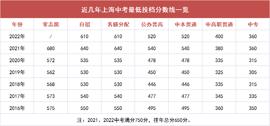 首先,来看一下近几年上海中考最低投档控制分数线: