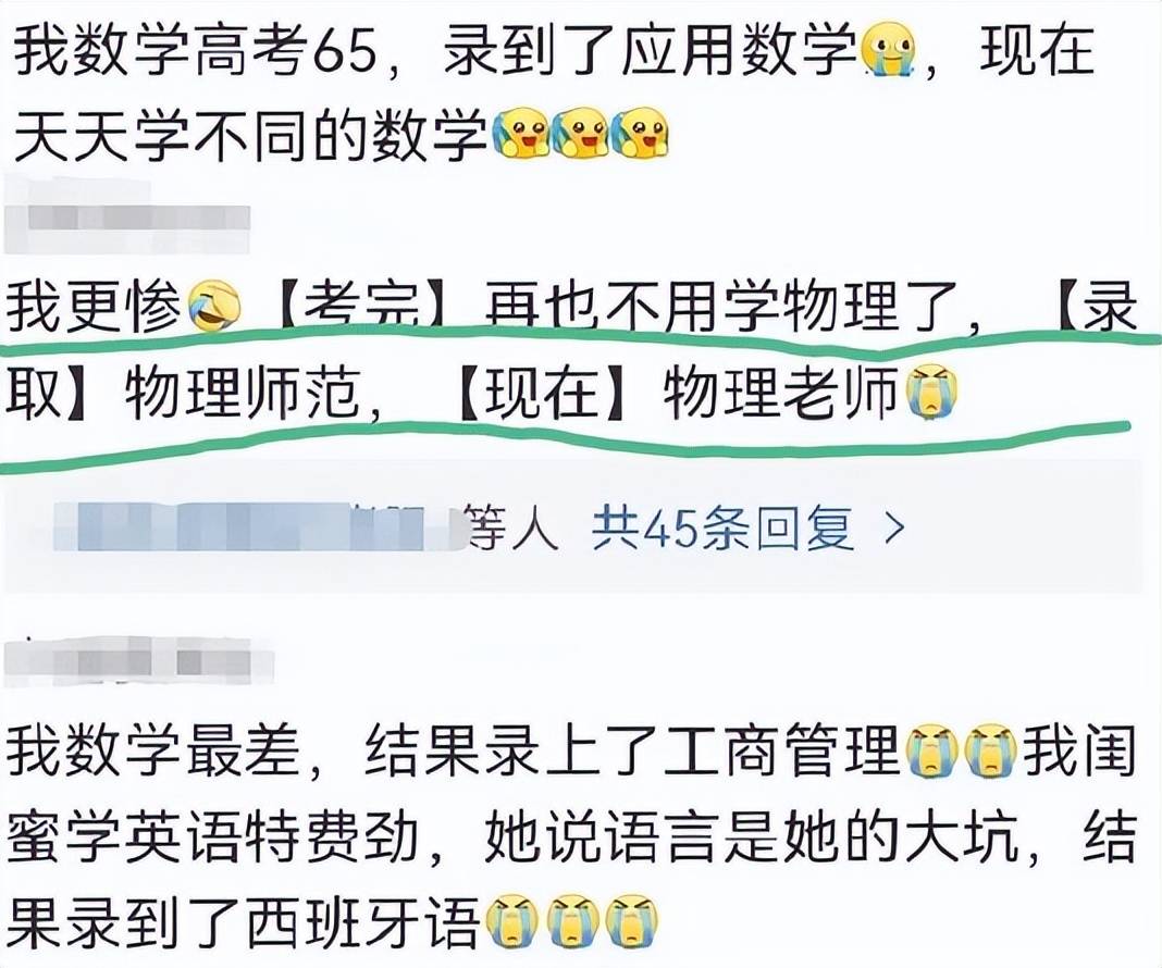 而填高的选项,往往就是分数线偏高的热门或学校的王牌专业。还有数学刚及格的人,恰好被统计专业录取,真是折磨啊。