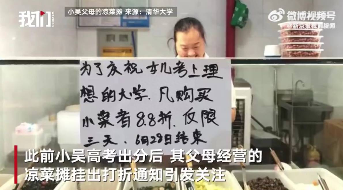 女儿考上清华大学凉菜摊为庆祝打88折 女儿报到回应:打折是分享喜悦,入学后