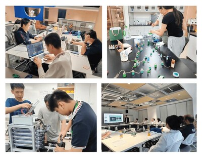 队员们在老师的指导下进行实验和设计
