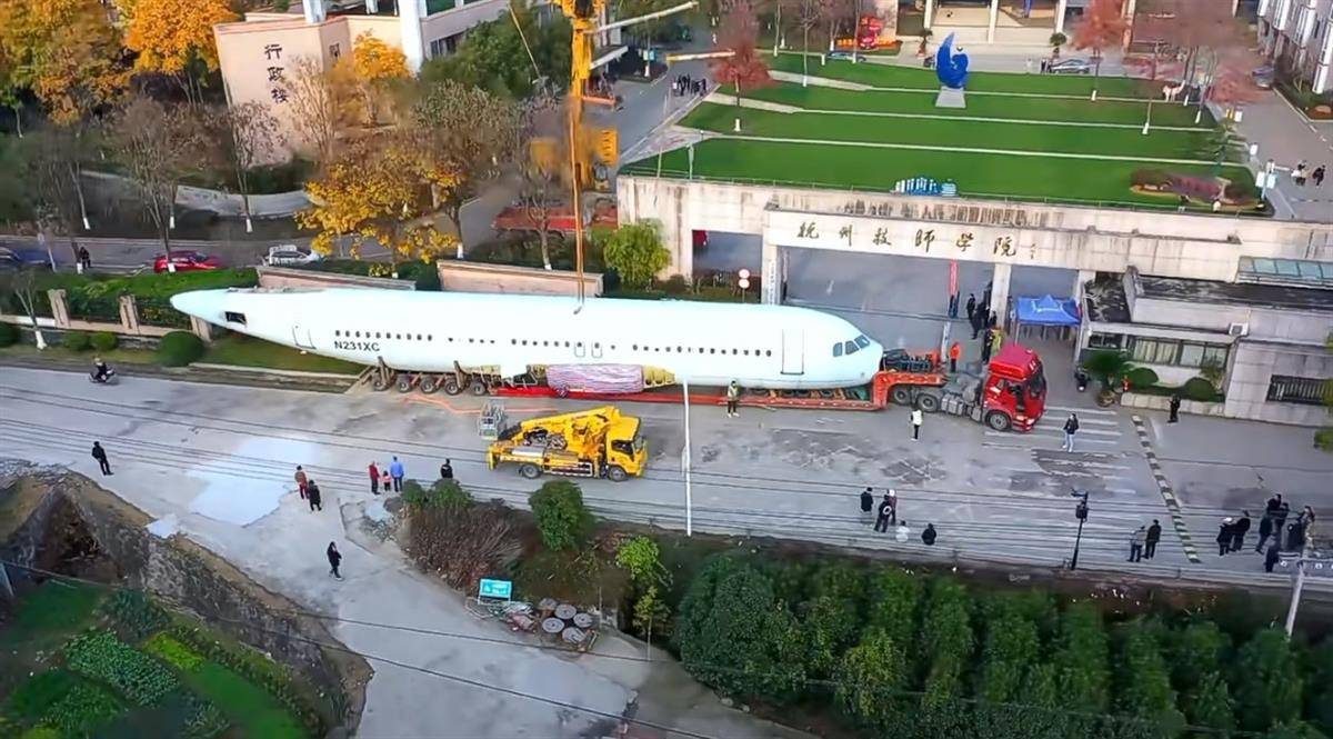 这所学校是杭州技师学院。12月13日,机身运抵学院后,一亮相就火了,同学们一有空就“围观”,路过也会顺手拍两张照片。无论是学生的朋友圈,还是学校各个群,随处可见这架飞机的身影。
