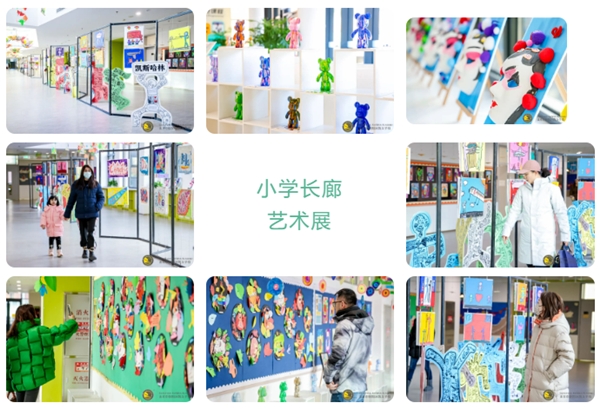艺术节演出结束后,家长们来到教学楼,参观了长廊里布置着孩子们在视觉艺术课上完成的作品。