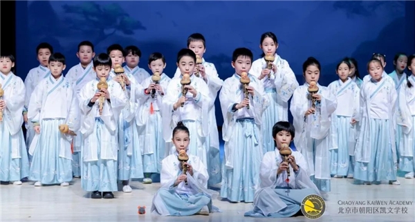 说到有特色的民族乐器,三年级的同学用中国西南少数民族的古老乐器葫芦丝,为大家带来了一场唯美的合唱表演《向云端》。