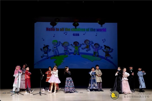 作为国际学校的学生,怎么可能只会说一国语言呢?为了向全世界的孩子们问好,竟然用九种语言带来了歌曲表演唱。