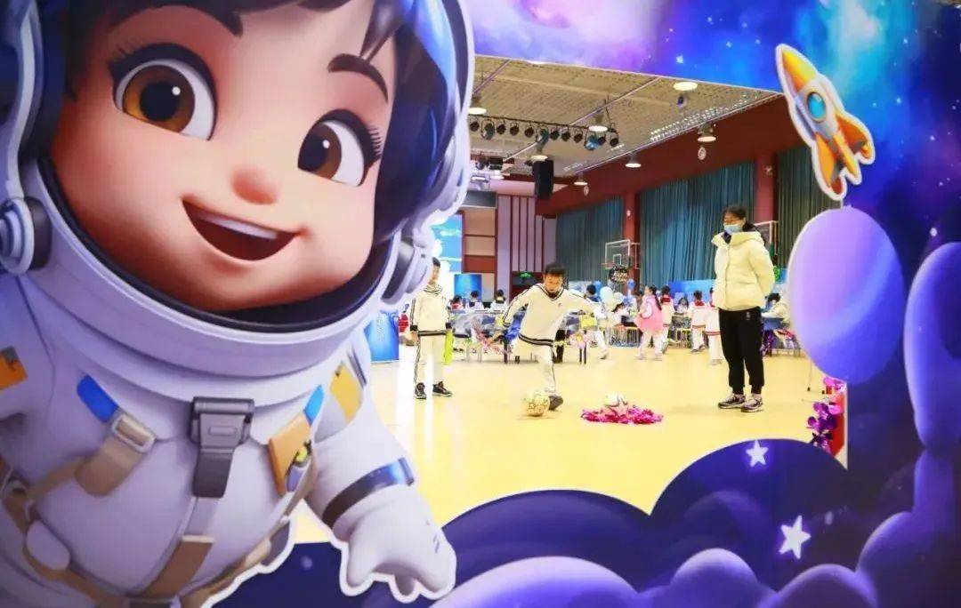 今年期末,北京亦庄第二中心小学将“乐考”考场搬出了校园。该校一、二年级的学生来到了北京市崇文小学的体育馆,参加“对话天宫逐梦想遨游星海探苍穹”为主题的学业成果展示活动。