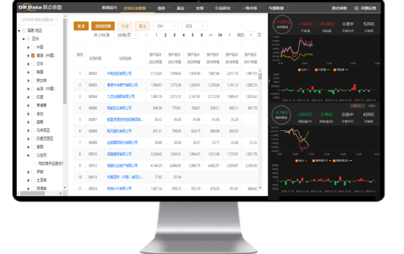 此外,原点参数开发了有自主知识产权的“自动化跨准则转换系统”,将所有国家/地区的上市企业财务数据,按同一会计准则完成标准化。最终实现了同行业企业跨国、跨区域的财务科目与财务指标数据的对比、排序。用户可按国家、行业、年份、财务科目和财务指标5个维度对全球所有上市企业数据进行操作。