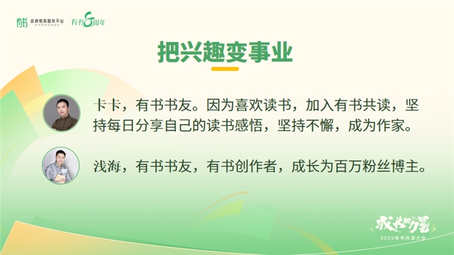 在有书的社群里面有很多书友,通过共读学习把自己的意愿、兴趣变成了自己的事业,