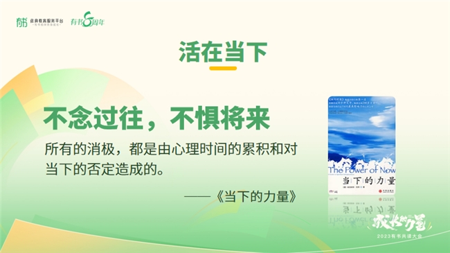 《当下的力量》里说:“所有的消极都是由心理时间累积和对当下的否定造成的。”不恋过往,不惧将来。本自具足,活在当下,方能为自己开辟宁静的精神乐土。