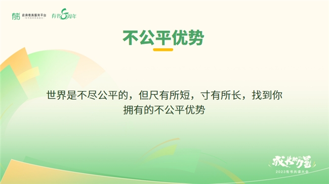 但反过来看,它又是公平的——尺有所短,寸有所长,我们每个人都拥有自己的不公平优势。要相信,天生我材必有用,找到自己的能力圈和发力点,更容易事半功倍。