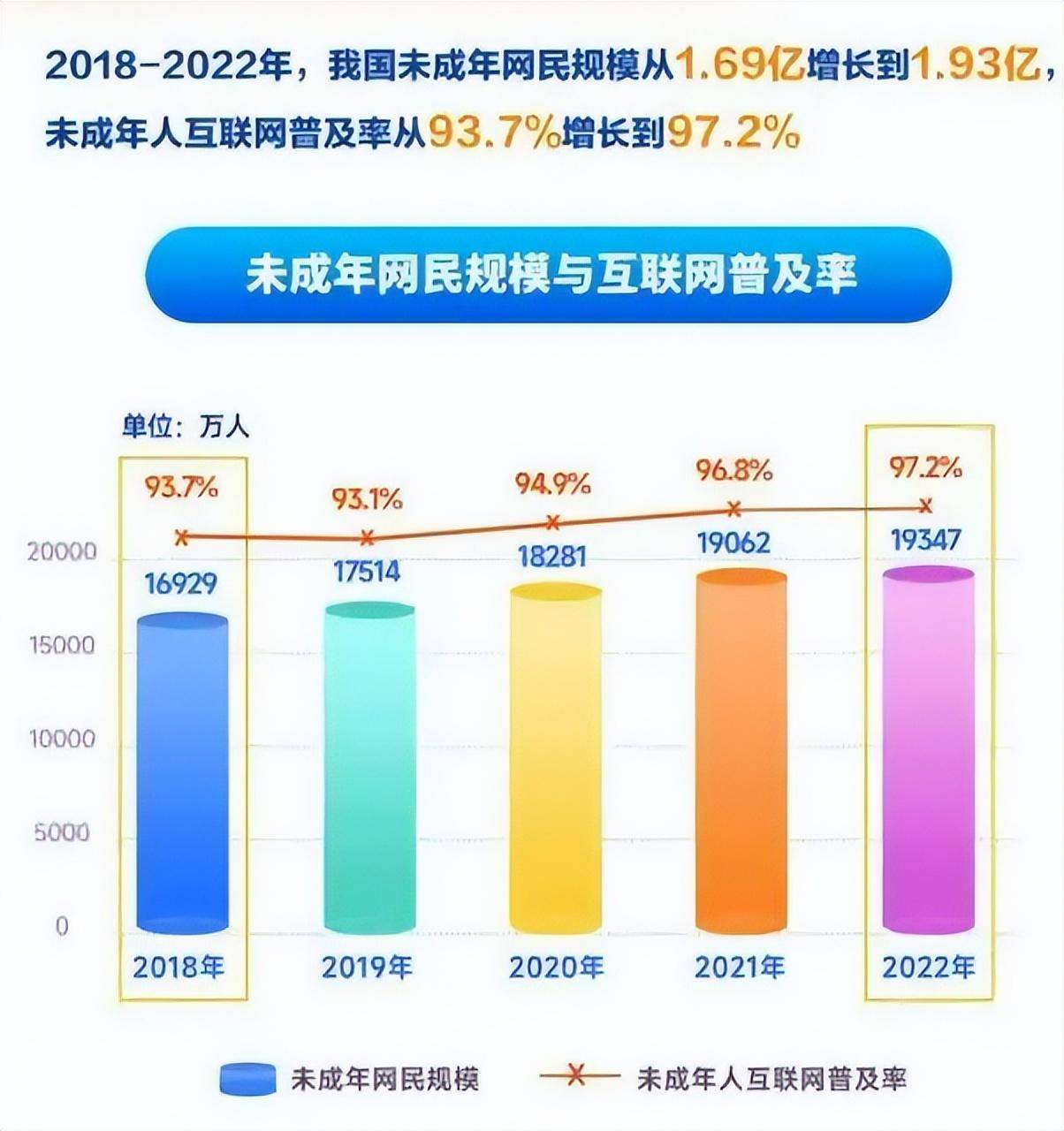 孩子们爱说网络流行语,并不难理解。根据2023年12月发布的《第5次全国未成年人互联网使用情况调查报告》,2022年我国未成年网民规模已突破1.93亿,未成年人互联网普及率达到97.2%。同时,未成年人用网低龄化趋势明显,过去5年小学阶段的未成年人互联网普及率从89.5%提升至95.1%。孩子们成长于数字世界,沉浸在互联网中,自然会在潜移默化中学习网络表达。