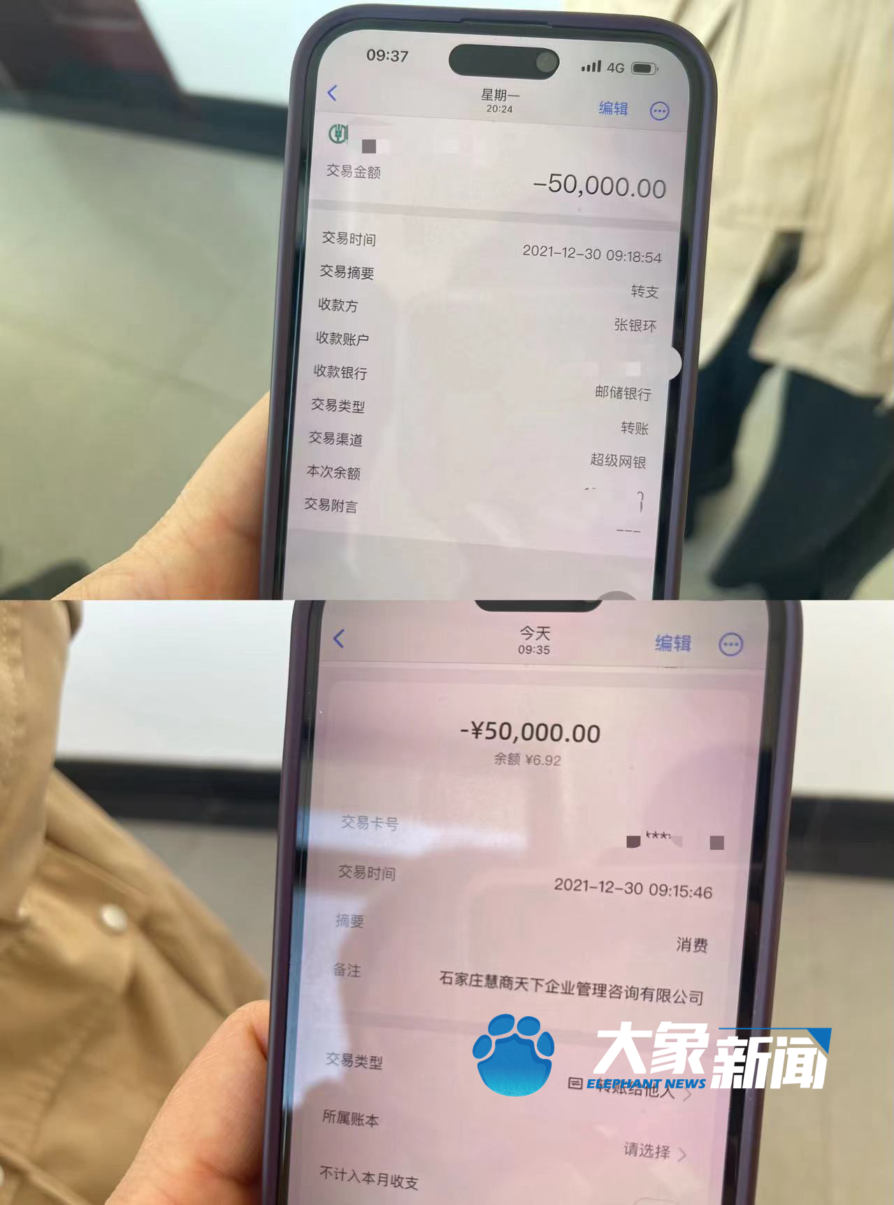 毛女士现场交10万元正式加入“慧商企业研修班”,这10万元有一部分转入“石家庄慧商天下企业管理咨询有限公司”的账户上,另一部分转给名叫“张银环”的个人账户里。双方没有签订任何的书面合同,也没有开具发票。