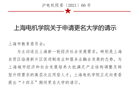 很明显,上海电机学院决心布局航空领域,发力航空人才培养。值得注意的是,该校曾于2021年向上海市教委递交了“关于申请更名大学的请示”,希望在“十四五”期间完成更名大学,建设成为特色鲜明的高水平应用技术大学。
