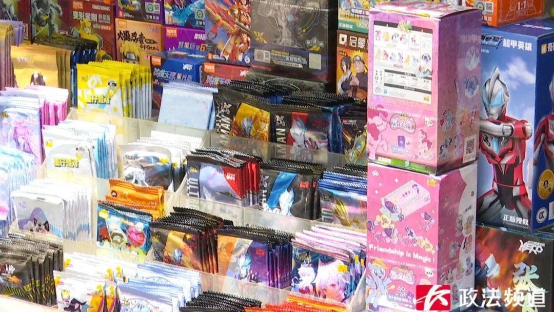 记者随机走访了几所小学,学校周边的小卖部或文具店里,都在显眼位置摆放着各式各样的卡包。