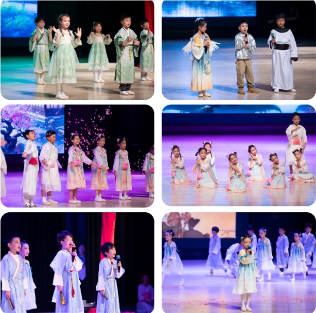 整场演出以跨学科融合学习为基础,不仅考验了班主任老师们高超的编排才能,也锤炼了学生们在语言和表演方面的才华。观众席中的家长们全程举着手机,不愿错过任何一个精彩细节。孩子们动情而投入的演出触动了每位观众内心最柔软的角落。