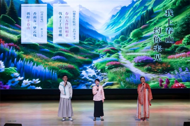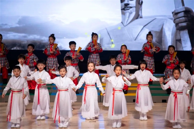 二年级的同学们以一首春晚热歌《上春山》为引 ,与诗人一同踏足青山绿水,领略春天的独特魅力。在这片春意盎然的山水间,品味诗意的芬芳,感受生命的美好。美妙的童声合唱欢快悠扬,堪比大型春晚现场。小朋友们舞台上大方不怯场,走位精致,撒花瓣的表演是全场最佳的小可爱。