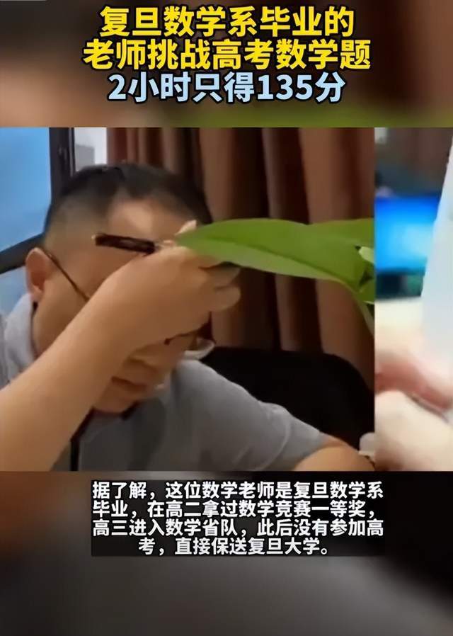 那一年,同样发出挑战的还有靠数学竞赛一等奖保送复旦大学的一名成都高中老师。根据中国网报道,最后该老师答题2小时,也只得135分。