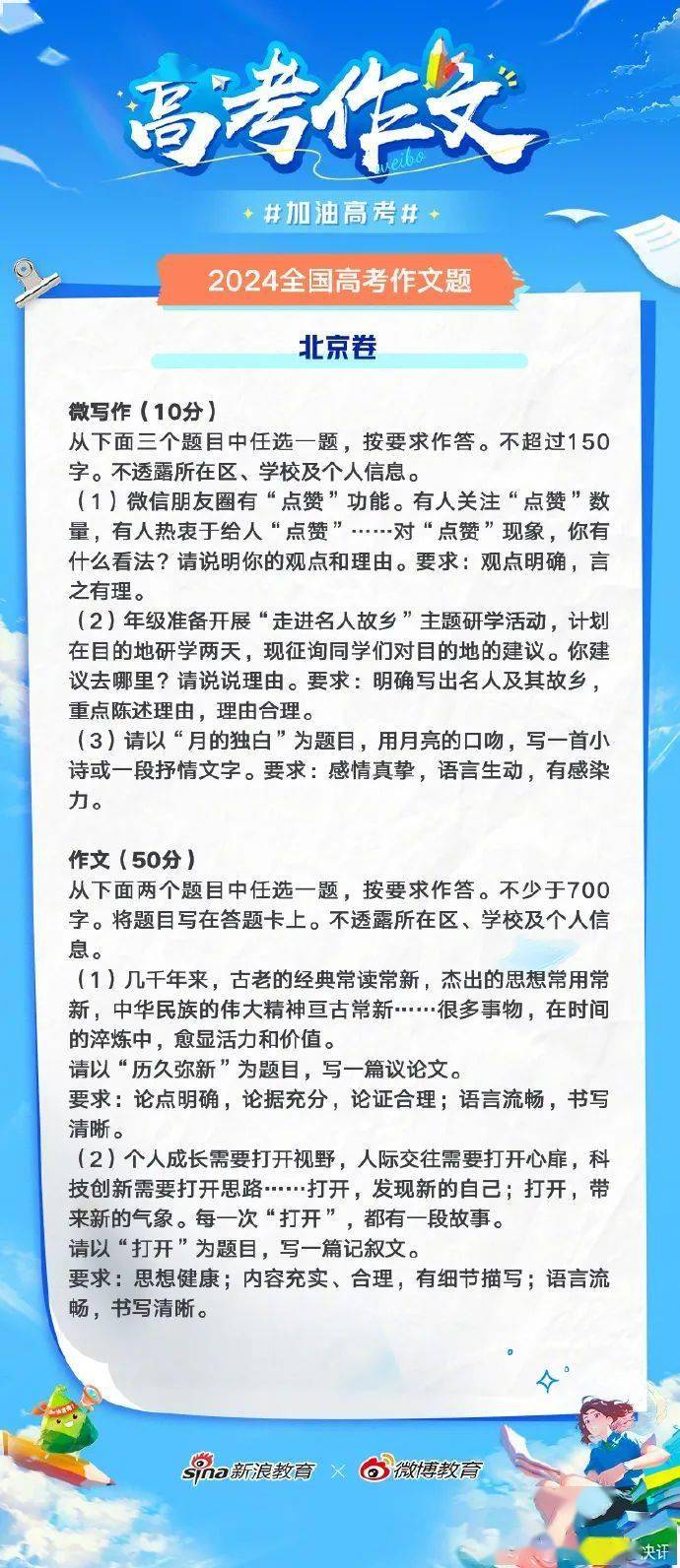 2024全国高考作文汇总来啦!新课标全国Ⅰ卷、新课标全国Ⅱ卷、全国甲卷、各地自主命题……欢迎转存2024各地高考作文题目!