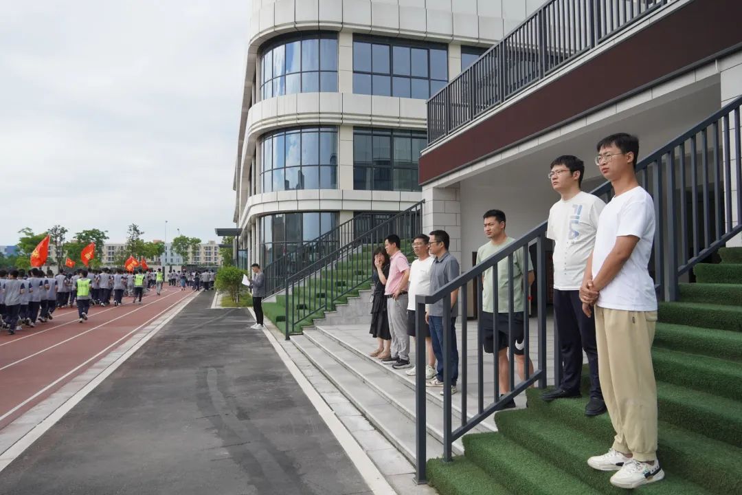 代表团观看学生跑操。