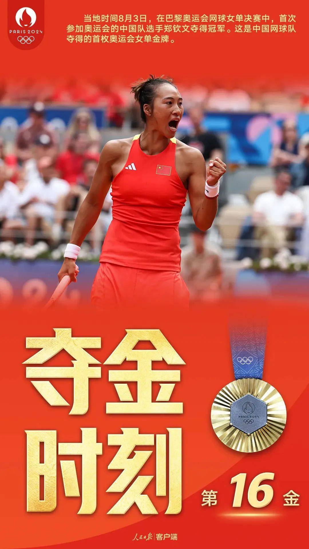 当地时间8月3日,在巴黎奥运会网球女单决赛中,首次参加奥运会的中国队选手郑钦文以2-0战胜克罗地亚队选手维基奇,摘得金牌。