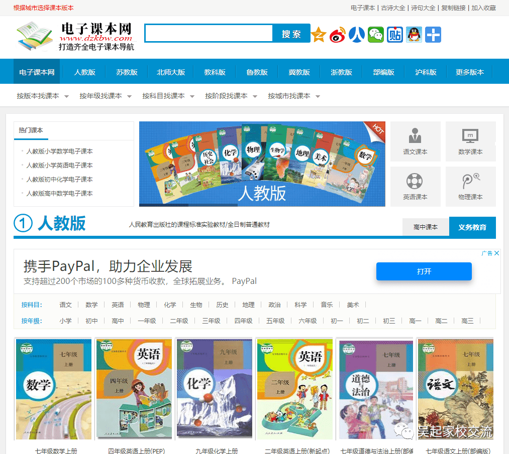 教材资源包括小学、初中、高中的电子版教材和学习资源。