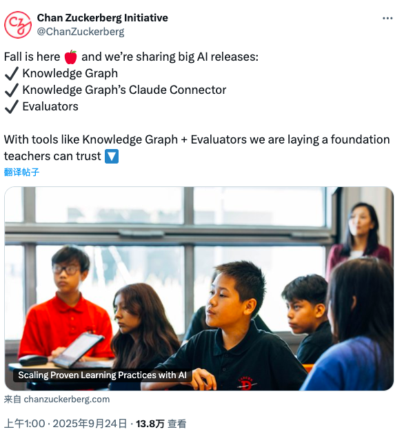 摘要: 9月25日消息,近日,Anthropic宣布与Chan Zuckerberg Initiative(陈扎克伯格倡议,简称CZI)的Learning Commons部门达成合作,共同解决K12教师在课堂使用 AI 时面临的关键