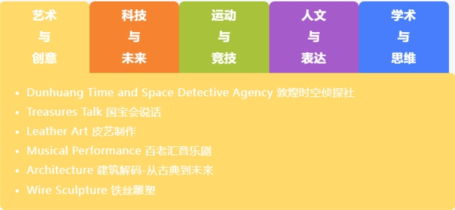 摘要: Part.01 增益课程 丨 多元赛道,学术buff拉满 课外生活 本年度, 朝阳凯文共有 170+门增益课程 , 涵盖科学、人文、艺术、 体育、语言标化、小语种、 竞赛