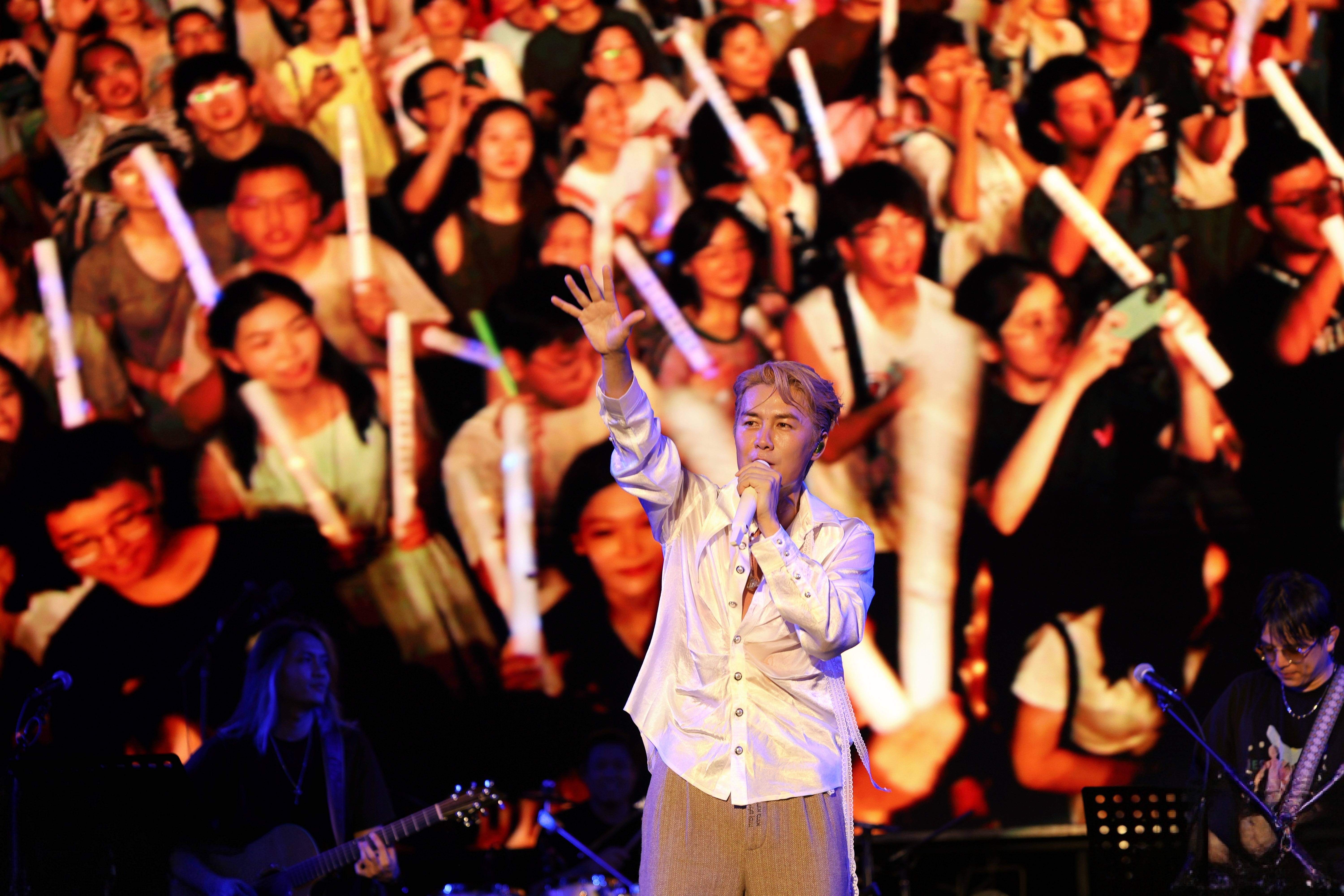 NAME以《Sweet Chili》《Rainbow》等单曲点燃全场,轻快旋律与活力的舞步瞬间拉近新生距离;段奥娟的《幺儿》《或许我们都应该放过自己》,以细腻嗓音诠释成长心事,不少新生随旋律轻声跟唱,在歌词中找到情感共鸣;苏勋伦《无限可能》《乖乖宝贝》等作品以摇滚节奏带动气氛,现场欢呼声与灯光交织,成为一幅难忘的青春图景;丢火车乐队经典曲目《瑞秋》《白兰鸽巡游记》引发集体合唱,学子们将手机变为荧光棒,夜晚被染成一片星海;吴克群《为你写诗》《我们的冒险》等金曲掀起回忆杀,全场沉浸于跨越代际的音乐对话中。