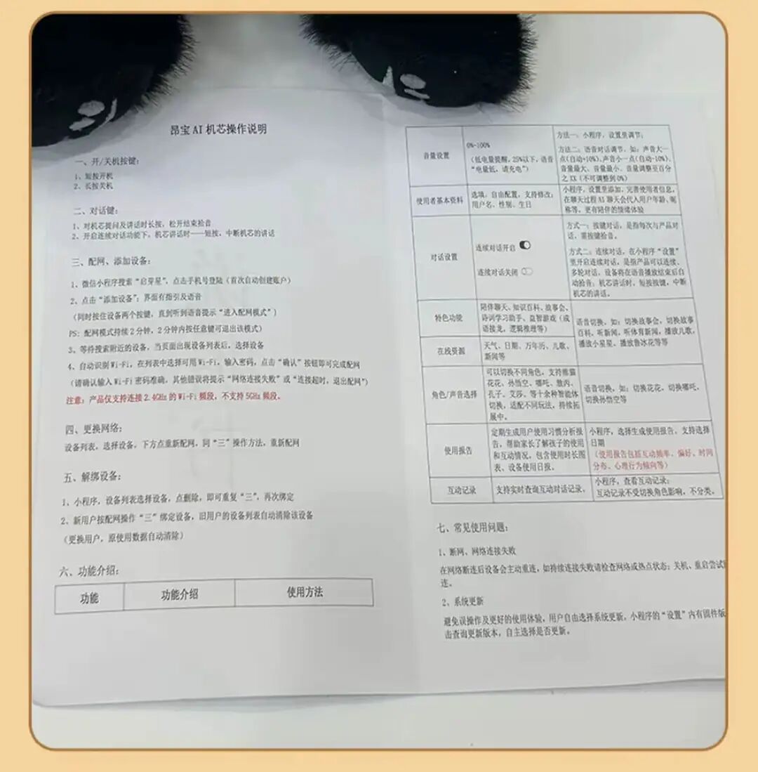 整理发现,AI花花官方名称为“AI智能花花”,使用了小熊猫的毛绒外观和内嵌AI机芯,整体大小在27cm上下。
