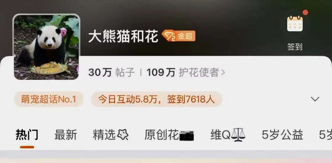 2023年,花花在各大社交平台爆火,“熊猫和花”先后登上多个平台热搜第一,并长时间霸榜,被网友称为“熊猫界的顶流女明星”。