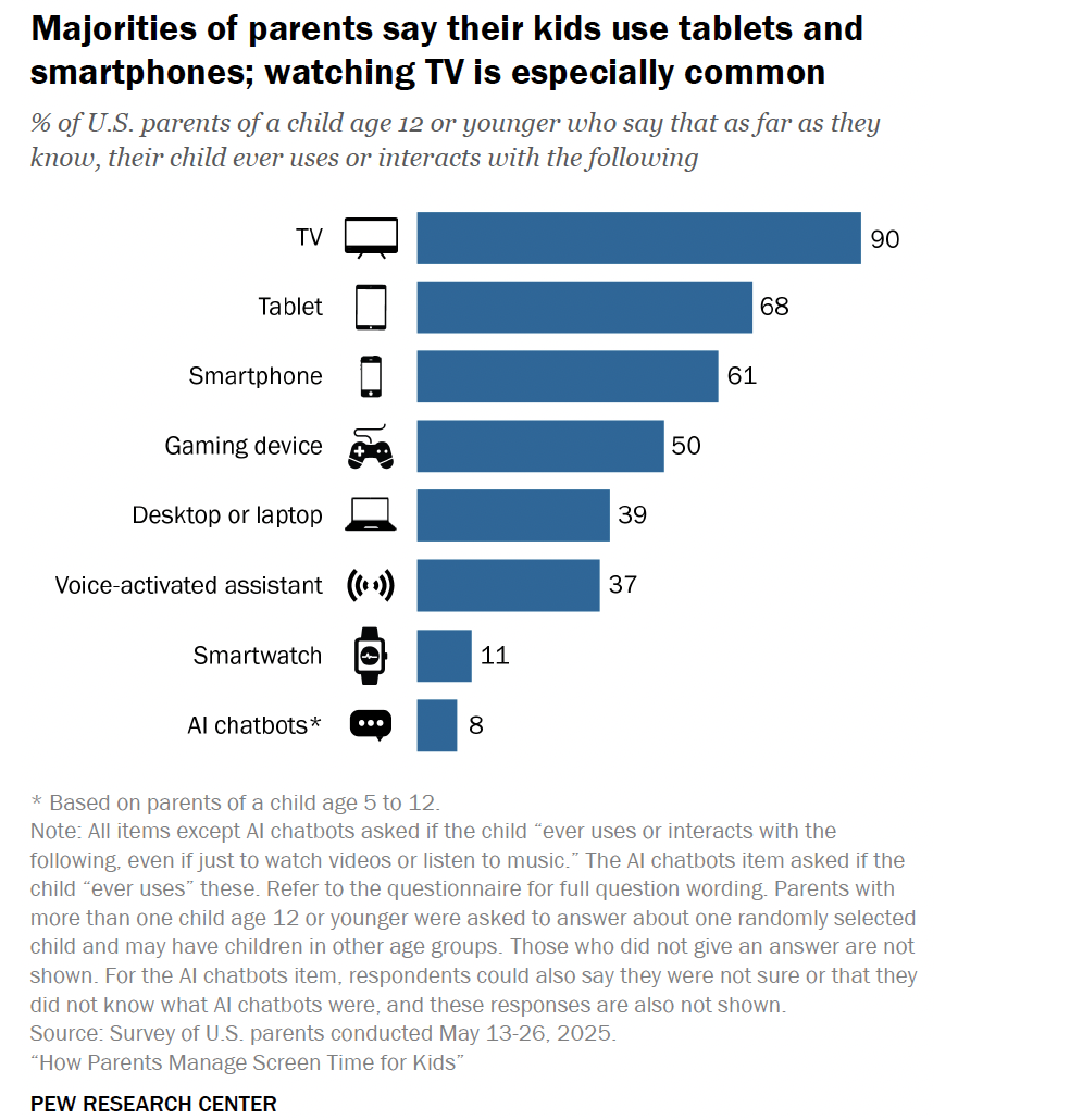 平板电脑和智能手机在孩子当中很常见,电视更是如此。