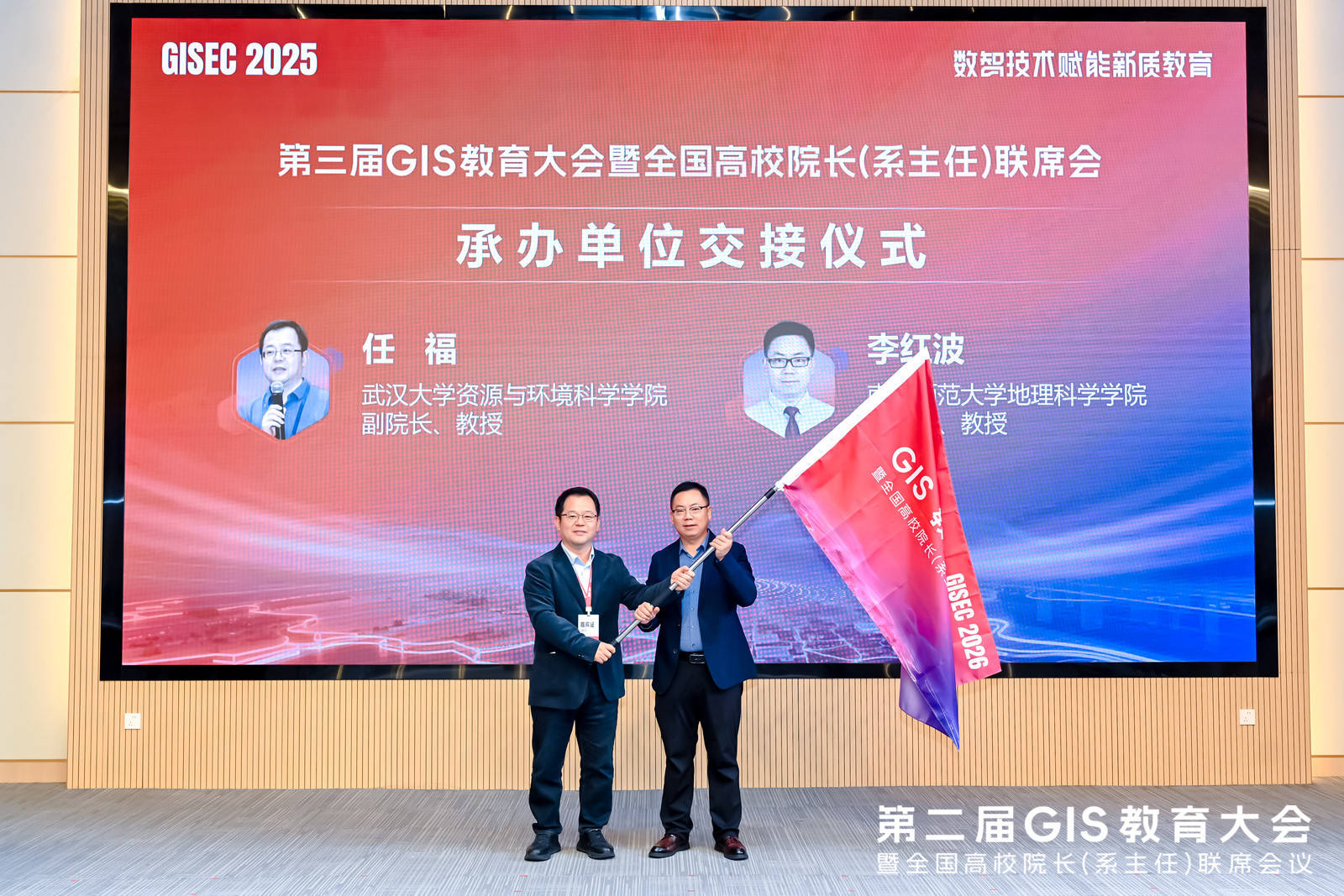 10月25日-26日,以“数智技术赋能新质教育”为主题的第二届GIS教育大会暨全国高校院长(系主任)联席会议在武汉大学举办。大会由自然资源部地理信息系统技术创新中心、教育部高等学校地理科学类专业教学指导委员会主办,来自全国高校GIS专业负责人、教师近300人共聚珞珈山,共同分享数智技术赋能GIS教育的最新成果。大会同期还举行了全国高校院长(系主任)联席会议。