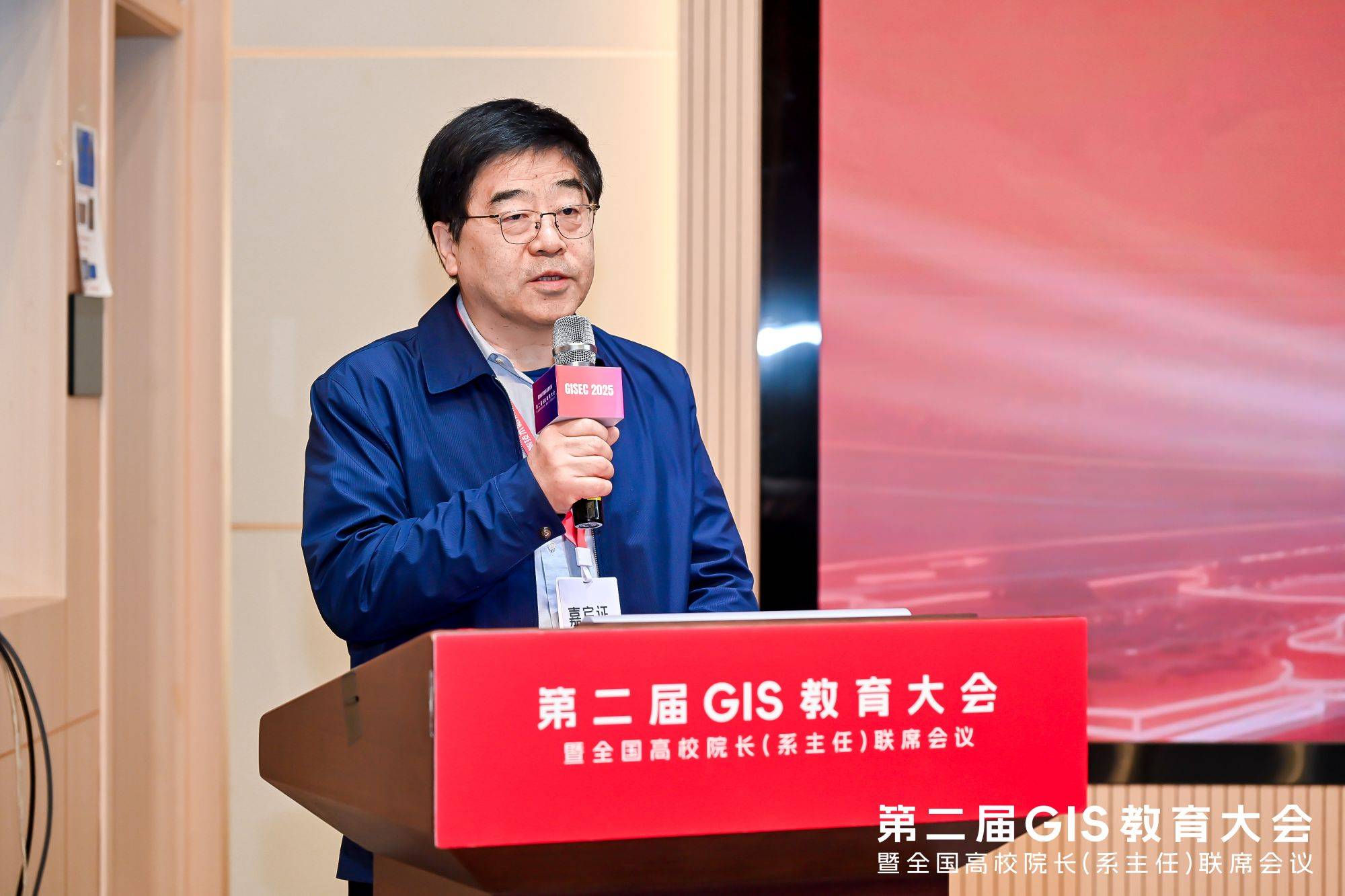 教育部高等学校地理科学类专业教学指导委员会副主任、南京师范大学汤国安教授在会上致辞。他谈到,GIS作为空间认知与数字技术融合的学科,不仅重塑了地理学的范式,更成为推动社会数字化转型的关键力量,这一成就源于一代代GIS教育工作者对“立德树人”根本任务的坚守,对“产教融合”育人路径的探索,对“学科创新”核心目标的追求。针对当前GIS教育面临的时代命题,他提出以“三个贯通”破题:贯通基础理论与前沿技术,夯实地理核心理论并融入AI、物联网等课程,构建“厚基础、强交叉”的课程体系;贯通课堂教学与实践创新,依托产学研平台让学生在项目中培养“从数据到决策”全链条能力;贯通国际视野与本土情怀,引入全球GIS资源的同时立足国情,培养兼具全球治理能力与服务国家战略担当的人才。