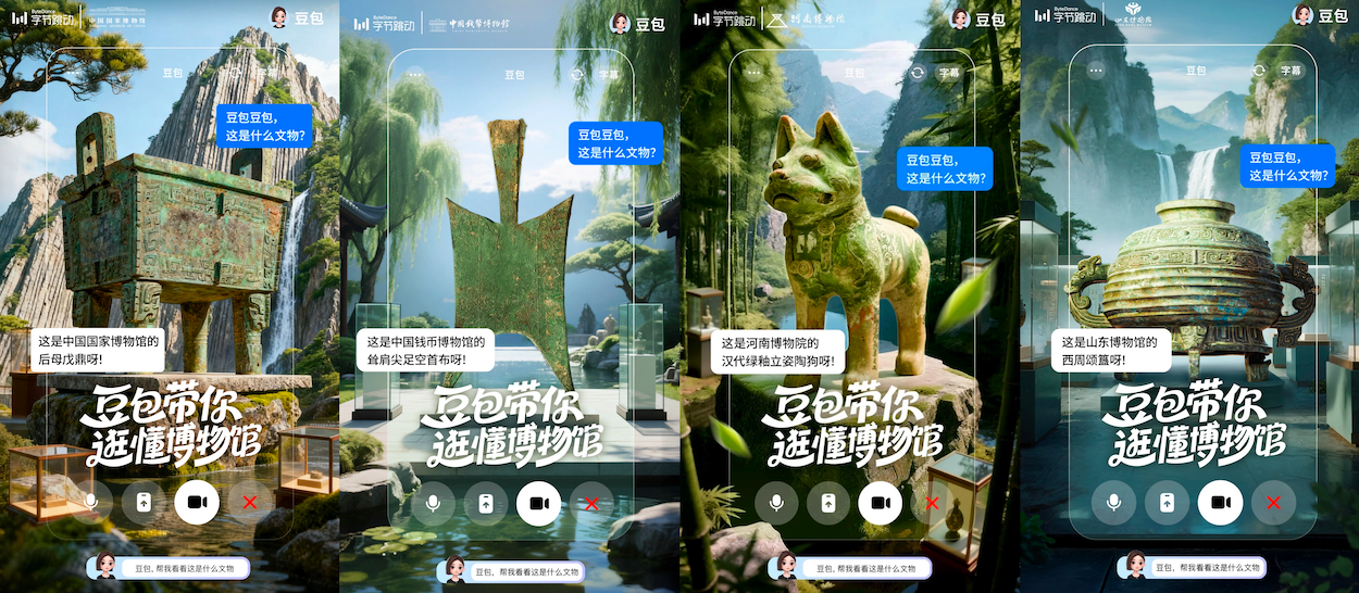 在合作展区中,游客游览时,可随时通过豆包发起视频通话或对文物拍照问答,了解藏品背后的故事,实现即看即问、即问即答。