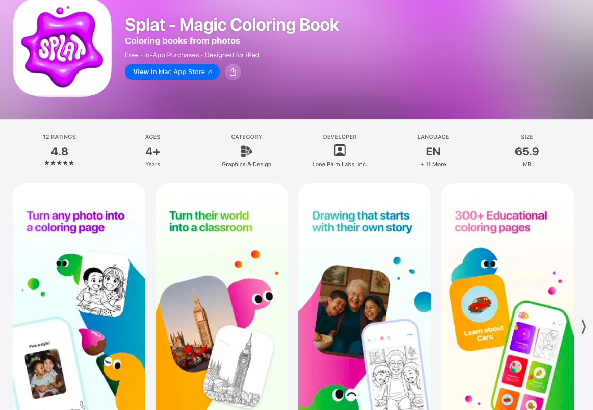 Splat的团队此前研发了照片分享产品Retro。他们关注到,孩子们很喜欢涂色,然而,许多提供涂色打印页面的网站往往充斥着广告,难以浏览。有时,这些可打印页面还需要支付费用,考虑到孩子们的涂鸦作品大多是一次性的,一些家长并不愿意为此付费。由此,Splat应运而生。