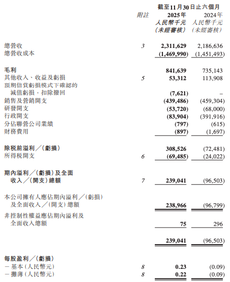 期内溢利2.39亿元,上年同期为亏损9650.3万元。