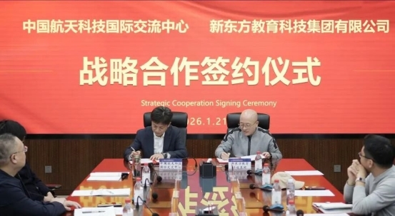 马年前夕,中国航天科技国际交流中心与新东方教育科技集团有限公司签署战略合作协议。双方将以此为契机,充分发挥各自优势,在全业务板块范围内推动更多新项目、新模式、新技术的合作探索,携手构建航天科技教育的新生态。