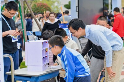 内场思想激荡,外场科创嘉年华同样高潮迭起。中央草坪上,上百件学生原创科创作品集中亮相——垃圾智能转运系统、水火箭、AI智能台灯、多传感器交互式智能家居、墨子照相机、智能快递柜顶棚、智能推拉窗、3D打印、桥梁模型等创意纷呈,更有多项省市科创大赛获奖作品惊艳展出。同学们化身小小讲解员,以自信从容的姿态、专业清晰的表达,细致讲解创作思路与实践过程。