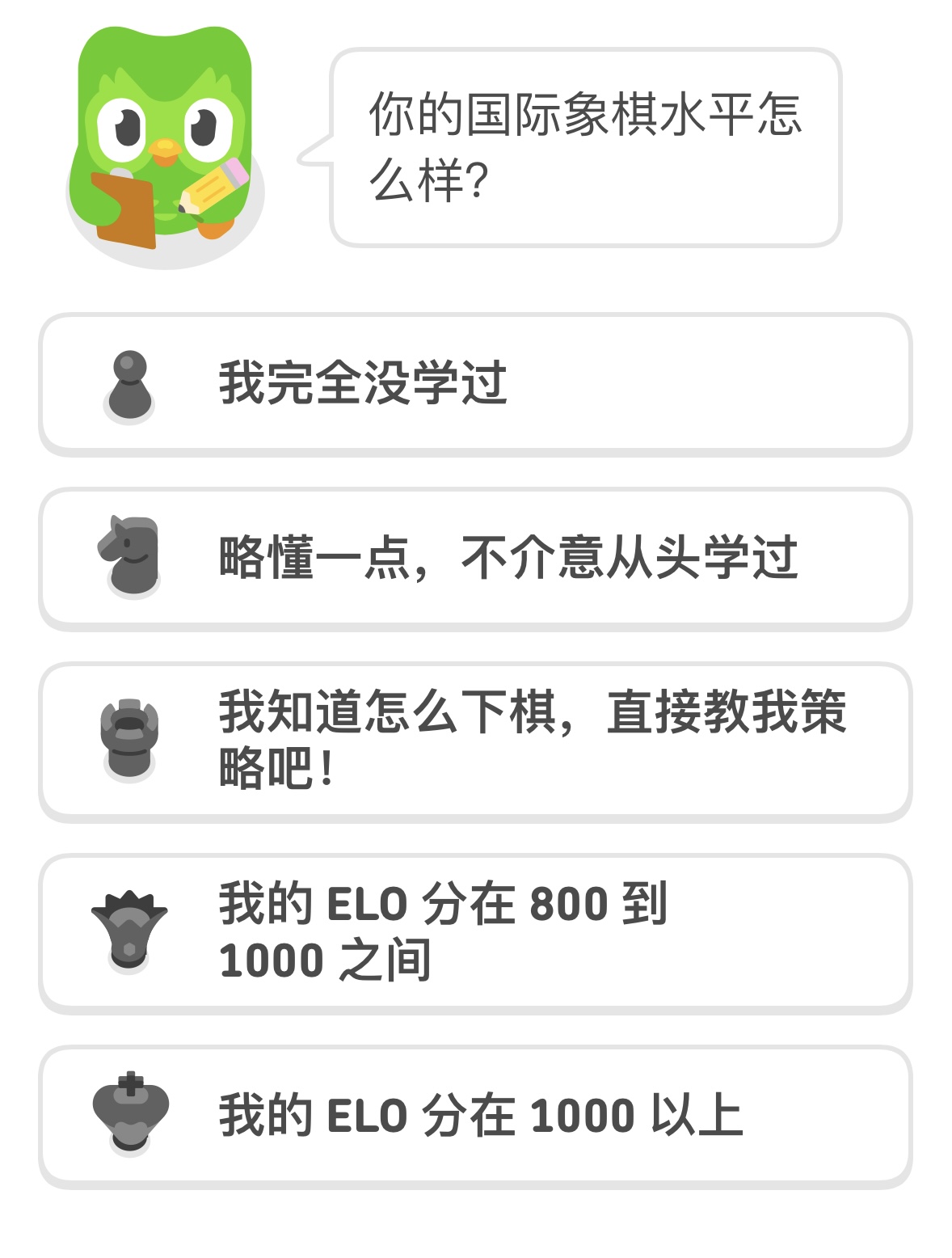 4月1日消息,多邻国国际象棋课程新增“对局”体验。