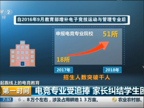 虽然电竞行业逐渐走上台面获得认可,但是由于家长的不了解以及学生的困惑,电竞教育曾一度备受质疑,2019年3月,中国央视经济信息联播就以专题《起跑线上的电竞教育》,公开解惑——电竞不是“打游戏”,并指出了当前电竞教育专业化培训待提升。