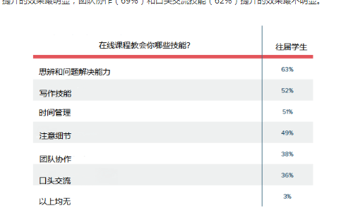 1.在线大学生认为他们通过在线课程获得了雇主所期望的软技能
