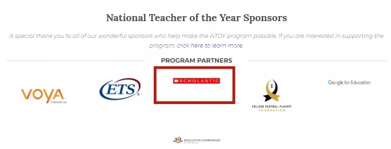 除此之外,学乐还是美国年度教师奖项(The National Teacher of the Year Program)的合作伙伴之一。这个全国性的荣誉奖项,在美国历史悠久、颇具盛名。