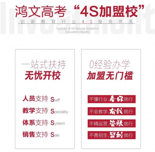 鸿文高考创新4S加盟服务体系,让教育投资去门槛化